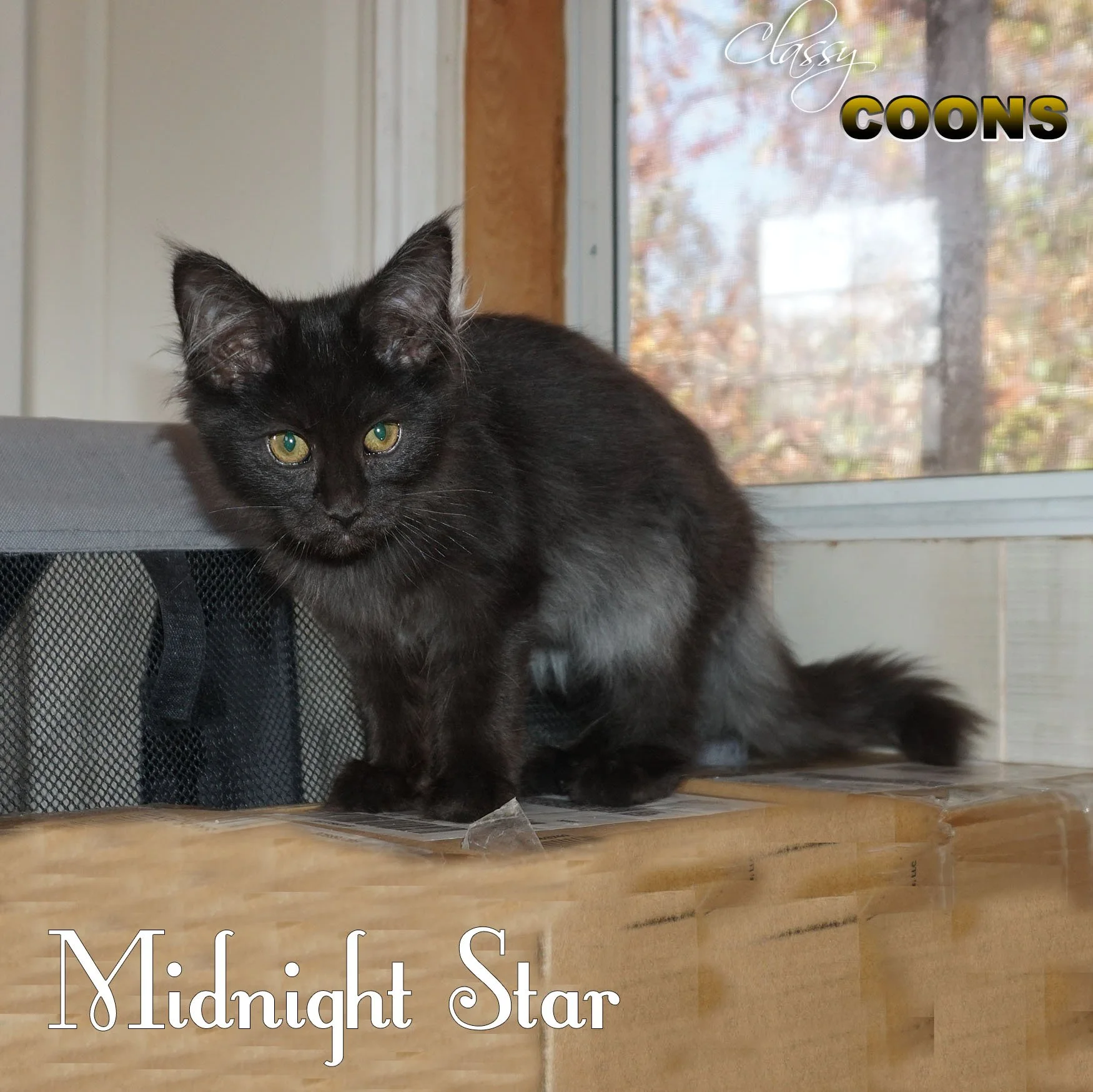 Midnight Star is a black smoke female born to Matilda and Henry Binx on June 30, 2025